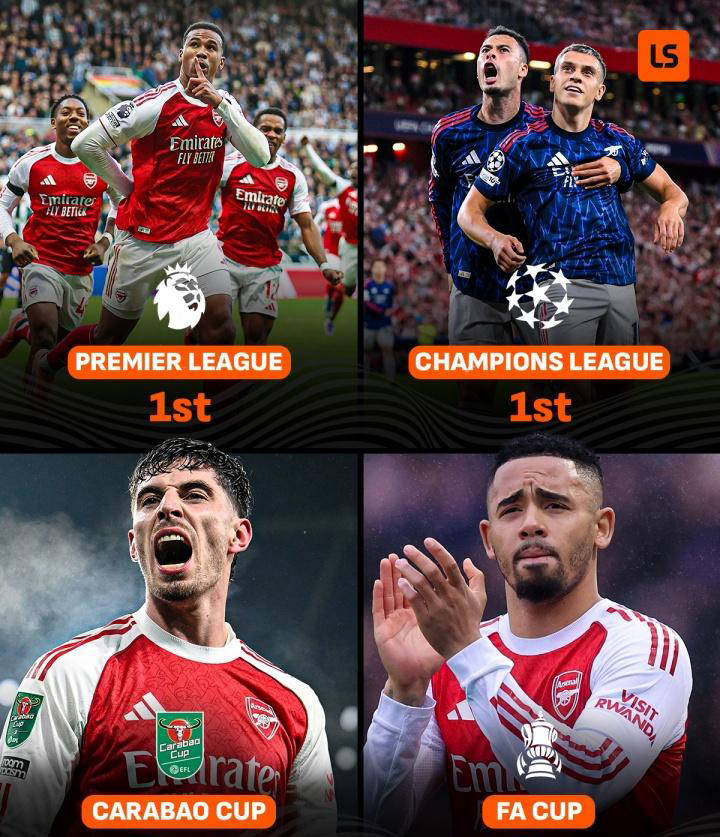 值得一提的是,这支阿森纳似乎继承了过去少有的“四线作战”传统,本赛季依然在英超、欧冠、足总杯和联赛杯四条战线上都保持着冲冠的可能。截止目前,英超24轮比赛结束后,阿森纳以53分高居榜首,领先卫冕冠军曼城达6分之多;欧冠小组赛全胜,排名第一,且被专业机构视为夺冠热门之一;足总杯顺利挺进32强,下一场对手维冈竞技实力相对较弱,基本锁定胜局;而刚刚淘汰了切尔西,成功晋级联赛杯,将迎战曼城与纽卡斯尔的胜者。从整体形势来看,阿森纳同时拥有四条战线上的冠军竞争资格,表现令人振奋。